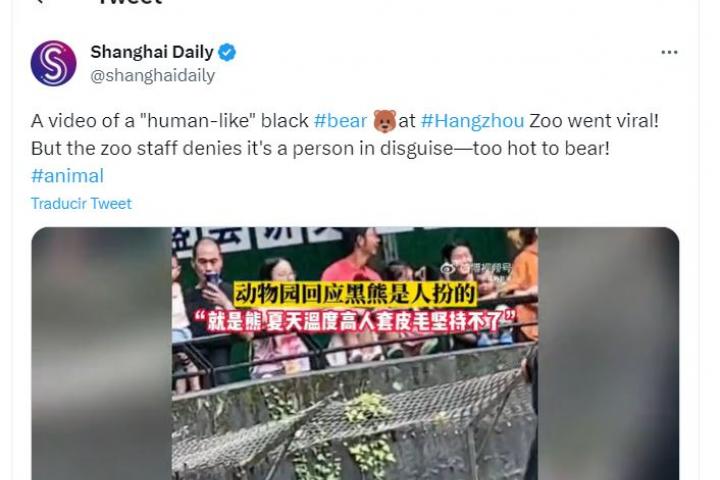 El periódico en inglés de Shanghái ha publicado en su cuenta de Twitter (@shanghaidaily) el vídeo de un oso en un zoo de la ciudad china Hangzhou que está dando mucho de qué hablar en las redes.