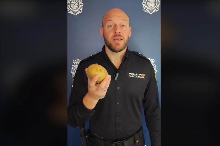 En un vídeo publicado en TikTok, un agente, patata en mano, pregunta: "¿Qué cara se te quedaría si compras un teléfono móvil de última generación por internet y te llega esto a casa? Pues sí, esto ha pasado".
