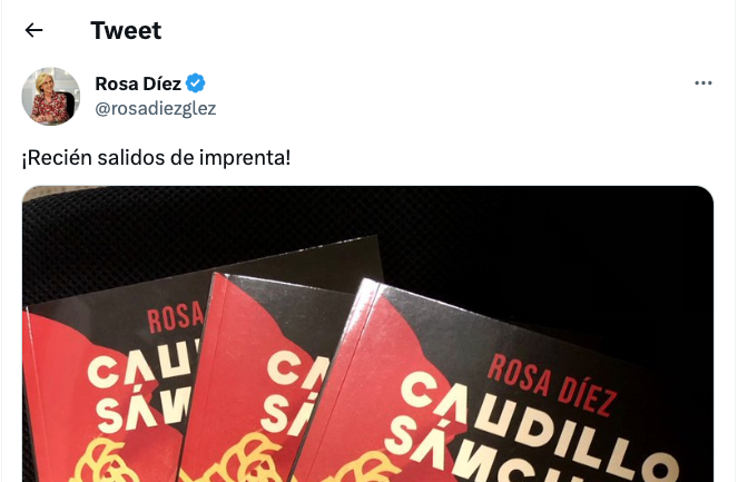 Rosa Díez, exlíder de UPyD, se ha convertido en la gran protagonista de Twitter en las últimas horas tras publicar una foto con la portada de su nuevo libro, que tiene mucha miga y que se titula Caudillo Sánchez.