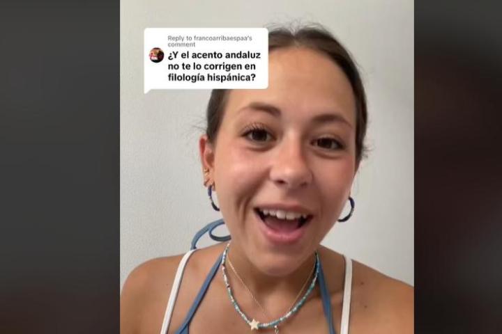 La filóloga hispánica y usuaria de TikTok conocida como @laestanteriadero ha respondido a un comentario en uno de sus vídeos anteriores en el que le preguntaba si el acento andaluz "no te lo corrigen en Filología Hispánica", arrasando con sus palabras.