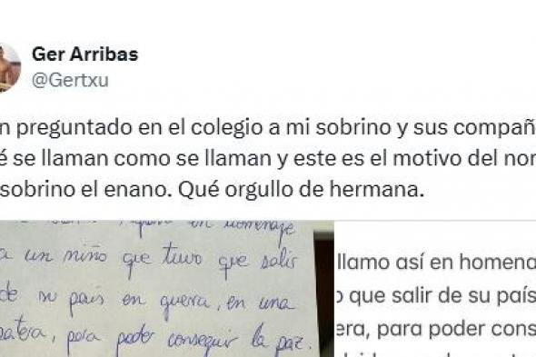 El usuario de X Ger Arribas, conocido como @Gertxu en la red social de Elon Musk, ha compartido una imagen de lo que respondió su sobrino pequeño a una pregunta que hizo su profesora a sus alumnos por el motivo por el que sus padres eligieron el nombre que les pusieron.