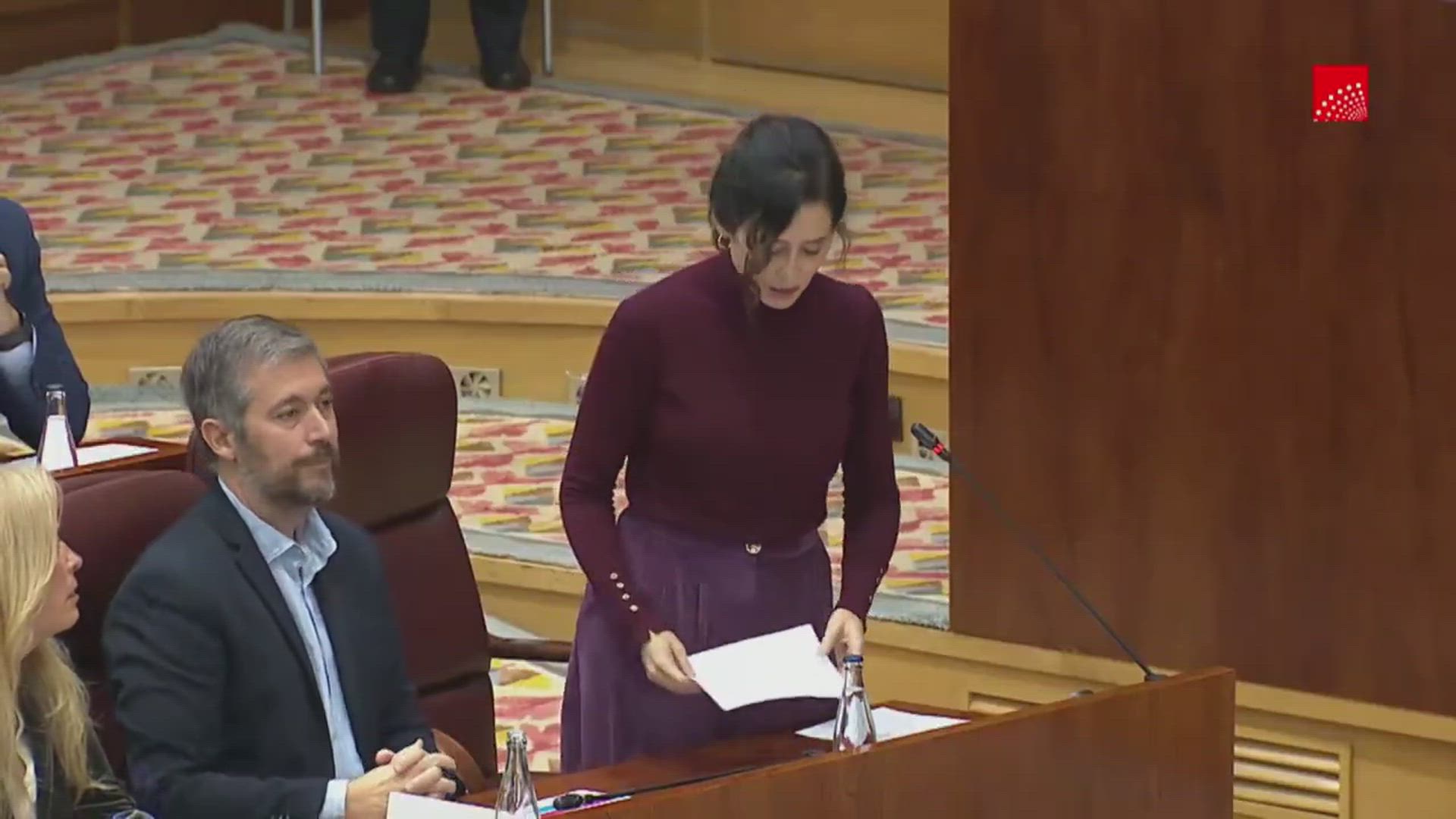 La presidenta de la Comunidad de Madrid contestó el pasado jueves, enfadada, a la intervención de la portavoz de Vox en el Parlamento autonómico, Isabel Pérez Moñino, que le reprochó que la vivienda fuese un "premio para los de fuera" y el "castigo para los de dentro".