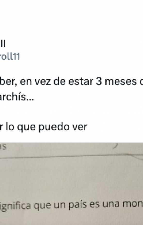 "Si lo llego a saber, en vez de estar 3 meses dando historia, lo hubiese dedicado al parchís... Ha dudado por lo que puedo ver", ha escrito el usuario junto a la imagen, en la que se ve que el alumno ha marcado como correcta la opción C: "Que manda una mona".