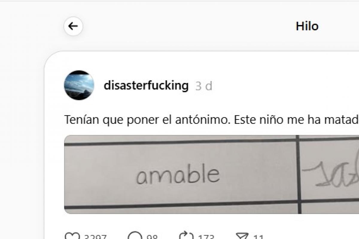 El ejercicio en cuestión lo ha subido a Threads el usuario disasterfucking junto al mensaje: "Tenían que poner el antónimo. Este niño me ha matado".