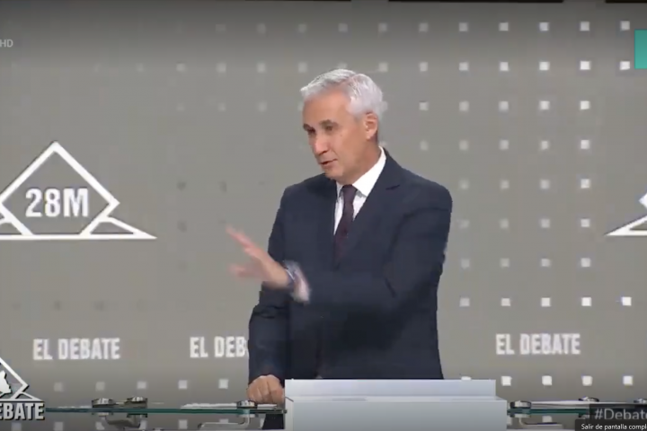 En un momento del debate, Arribas ha llamado Javier a Roberto Sotomayor, en referencia a Ortega Smith, de Vox, al otro lado del plató.