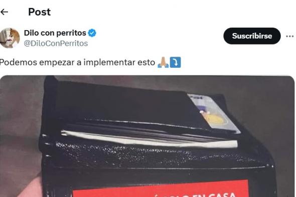 "Podemos empezar a implementar esto", dice junto a la foto de una cartera que tiene una tarjeta en la que se lee en letras muy grandes: "Mi perro está solo en casa".