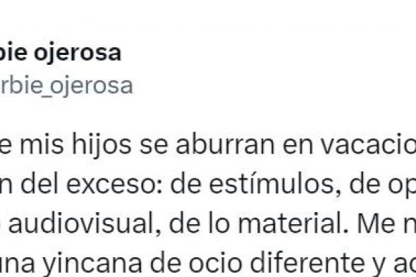 La tuitera Barbie Ojerosa (@barbie_ojerosa) ha montado un debate en X, la antigua Twitter, al narrar en su perfil de la red social de Elon Musk lo que está haciendo con sus hijos pequeños estas vacaciones de verano.