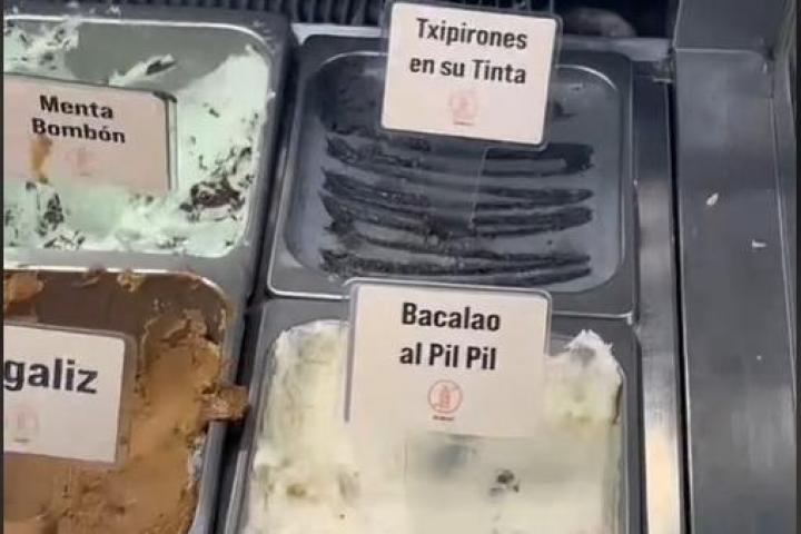 "Pruebo el helado de bacalao al pil pil y el de chipirones en su tinta. También hay sabores un poco más normales como kalimotxo o Athletic", ha relatado el tiktoker mientras ha iso enseñando el escaparate de la heladería, en el que se pueden ver un sinfín de opciones.