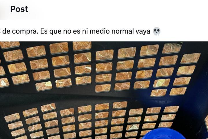 "20€ de compra. Es que no es ni medio normal vaya", ha escrito junto a una fotografía de una cesta en la que hay tres productos: unos filetes de pavo, un bote de Nesquik y una botella de aceite de oliva virgen extra —con alarma antirrobo incluida—.