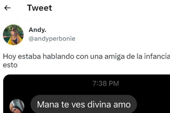 Algo que le ha ocurrido a la usuaria Andy, @andyperbonie en la red social del pájaro azul, que ha logrado un éxito total tras compartir la conversación que ha mantenido con una amiga de la infancia a través de Facebook.