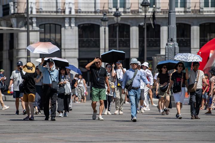 A la derecha, la Puerta del Sol, en el que se han instalado unos toldos para dar sombra a una parte de la plaza, que han costado unos 1,5 millones de euros, un coste, para muchos, excesivo.