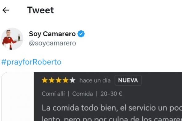 "El pobre Roberto va de arriba a abajo sin parar y aún así se lleva él las quejas cuando es obvio que no puede estar él solo. #prayforroberto", señaló el usuario, en un comentario que se ha hecho viral en pocos minutos en Twitter.