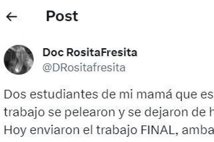 La usuaria de X @DRositafresita ha relatado lo que le ha ocurrido a su madre, que es profesora, con dos alumnas que tenían que hacer juntas un trabajo de clase.
