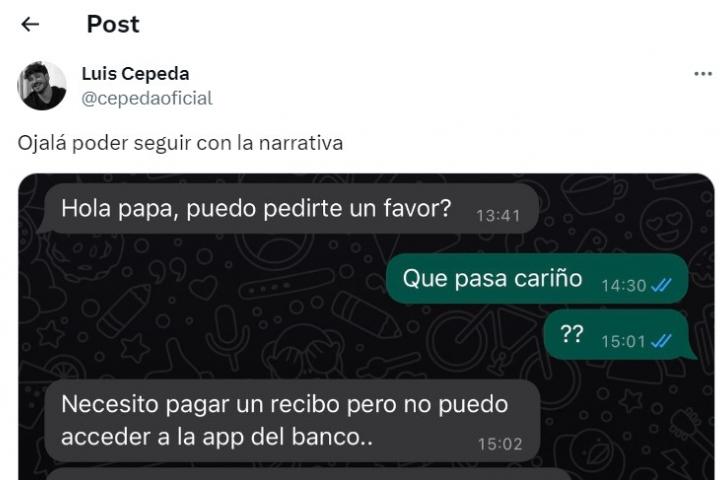 El músico Luis Cepeda ha respondido de una forma implacable cuando le han intentado hacer por WhatsApp la llamada 'estafa del hijo en apuros', un timo muy popular que está provocando numerosas víctimas en España.