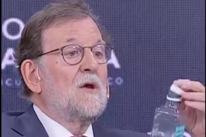 En ese foro, Rajoy se ha marcado un Rajoy hablando de los tapones de las botellas de plástico: "Demasiada regulación. Hace un mes estaba con una botellita de estas y veía que no podía eh, pues, pff, no había manera de quitar esto, empecé a beber, me puse hecho un circo y dije pero estas botellas son todas... y ahora son todas así".