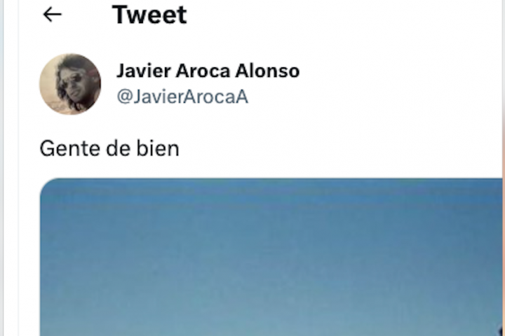 Aroca ha tuiteado las palabras "gente de bien" junto a la famosa foto en la que aparece el propio Feijóo junto al contrabandista y narcotraficante Marcial Dorado.
