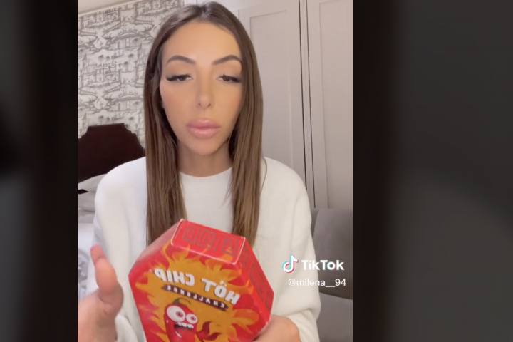 La usuaria de Tik Tok @milena__94 acostumbra, entre otras cosas, a probar diferentes productos de lo más particulares y grabar sus reacciones para publicarlas en sus redes sociales donde acumula cientos de miles de seguidores.