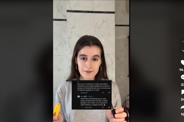 "Hay un montón de comentarios también diciendo que mi gallego no es gallego de verdad. Lo siento, por lo menos estoy hablando gallego. Obviamente mi gallego no va a ser el mismo que una persona de lo rural, alguien de costa que tiene gheada y que cuesta más entenderlos desde fuera, pero no por eso mi gallego es peor, la verdad", subraya.