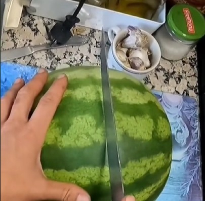 Sin embargo, al cortarla por la mitad se ha dado cuenta de que el resultado final no ha sido el esperado, ya que la sandía está verde en vez de roja. "Hostia, decepción total", ha manifestado entre risas.