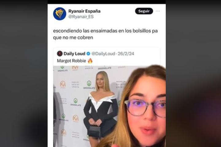 La primera tenía como protagonista a Margot Robbie, que acudió a una gala con un vestido fue tomado por Ryanair de forma sarcástica: "escondiendo las ensaimadas en los bolsillos pa que no me lo cobren". Ryanair, siempre haciendo bromas sobre las quejas generalizadas a la compañía.