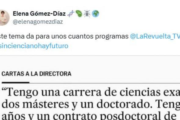 Gómez-Díaz, junto al pantallazo de este texto, ha querido comentar que este tema da "para unos cuantos programas en La Revuelta" y ha insistido en el mensaje de que "sin ciencia no hay futuro".