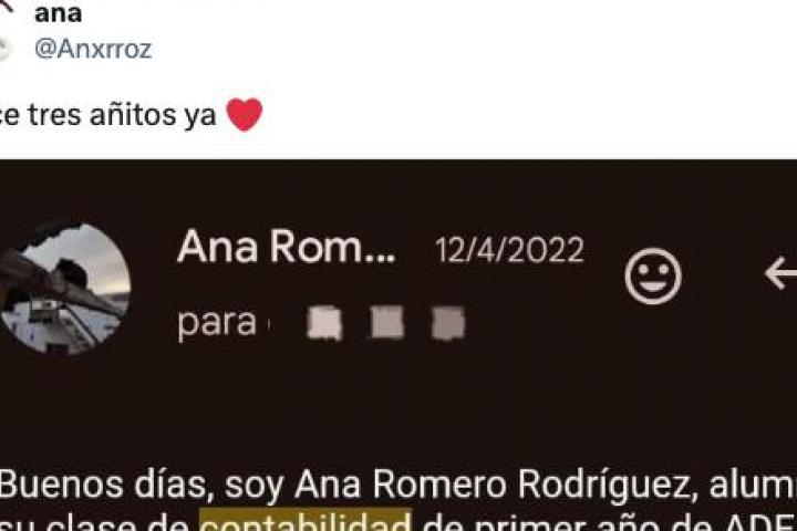 En las últimas horas, ha sido la tuitera Ana Romero (@Anxrroz) la que ha recuperado el correo que le mandó a una profesora hace tres años para preguntar por una nota y la contestación que este le dio.