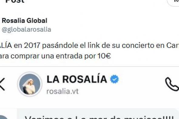 "Venimos a La mar de músicas!!!", le exclamó la cantante a la seguidora. Esta le preguntó si podía ser que fuera domingo y que el coste de la entrada fuera de 10 euros. "¿Auditorio parque Torres?", añadió la fan. Rosalía le contestó con un sincero "ostras no lo sé..." y, para despejar cualquier duda", le envió el enlace donde podía comprar las entradas para asistir a su concierto.