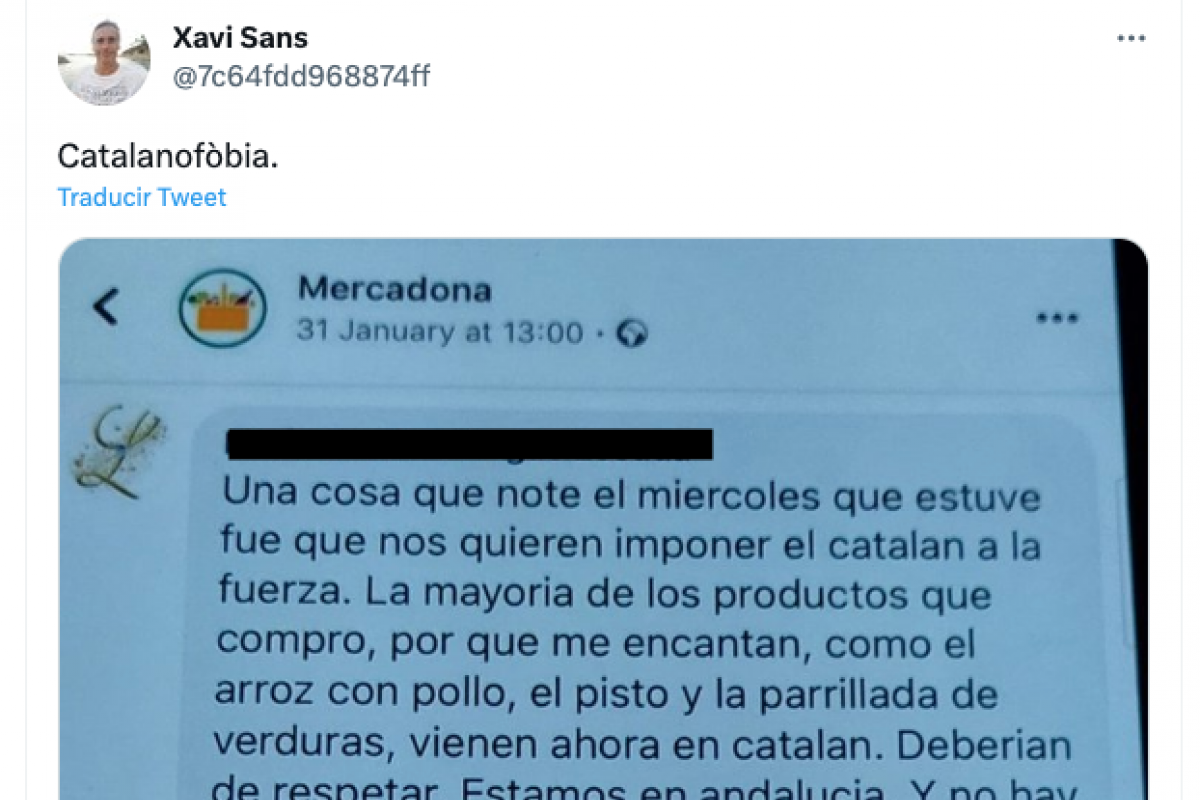 "La mayoría de los productos que compro, porque me encantan, como el arroz con pollo, el pisto, la parrillada de verduras, vienen ahora en catalán. Deberían de respetar. Estamos en Andalucía. Y no hay que imponer una lengua", añadía.