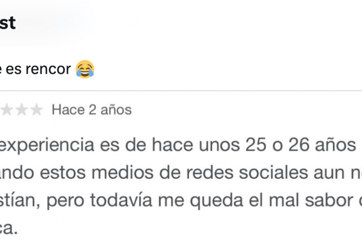 Según la RAE (Real Academia Española) el rencor es "resentimiento arraigado y tenaz. resentimiento, animadversión, odio, inquina, encono, aversión, aborrecimiento, tirria". Algo así ha debido de sentir la usuaria que dejó una reseña a un restaurante 25 años después de acudir.