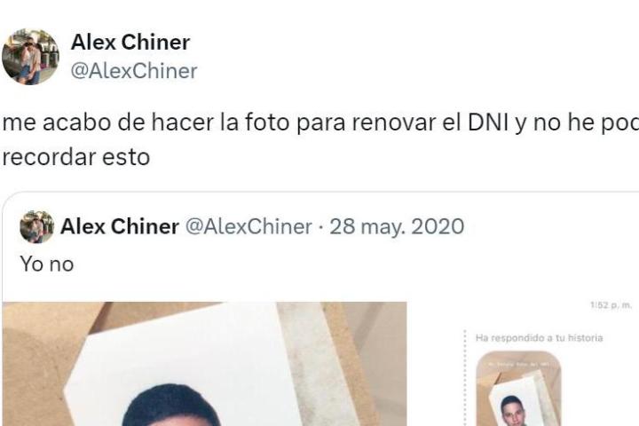 Ahora, cuatro años más tarde, el joven ha vuelto a compartir ese tuit después de que se hiciera fotos para renovarse el DNI: "Me acabo de hacer la foto para renovar el DNI y no he podido evitar recordar esto".