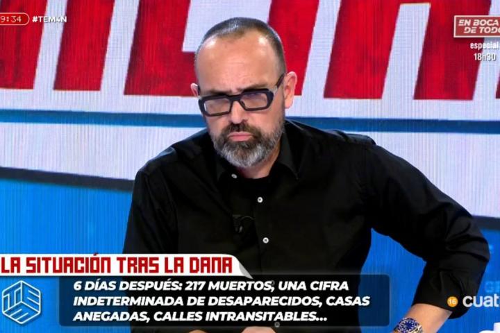Jiménez presentó en la noche del domingo un especial de Horizonte donde 'analizó' lo ocurrido en Valencia con polémicos expertos como Beatriz Talegón o Rubén Gisbert, acusado este lunes de mentir por llenarse las piernas de barro antes de una conexión.