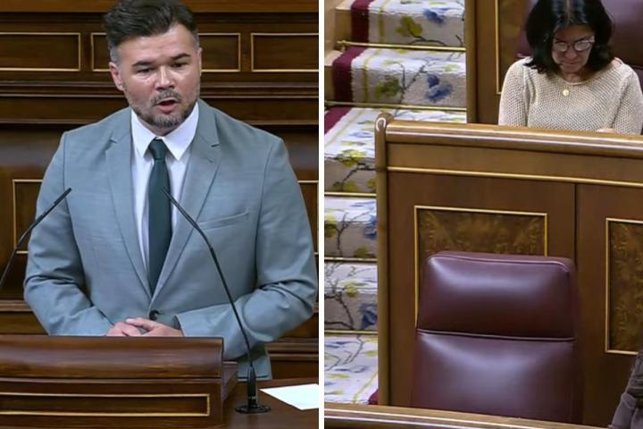 Rufián se fija en que Abascal se ha ido, le contesta y acaba bautizando así Vox