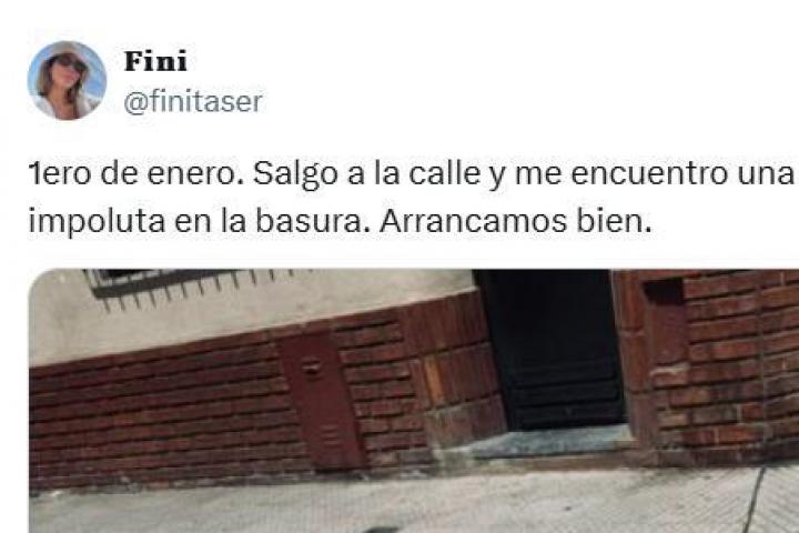 La tuitera Fini (@finitaser) ha subido una publicación a su cuenta de la red social X, anteriormente conocida como Twitter, contado lo que se ha encontrado abandonado en la basura al salir a la calle el 1 de enero.