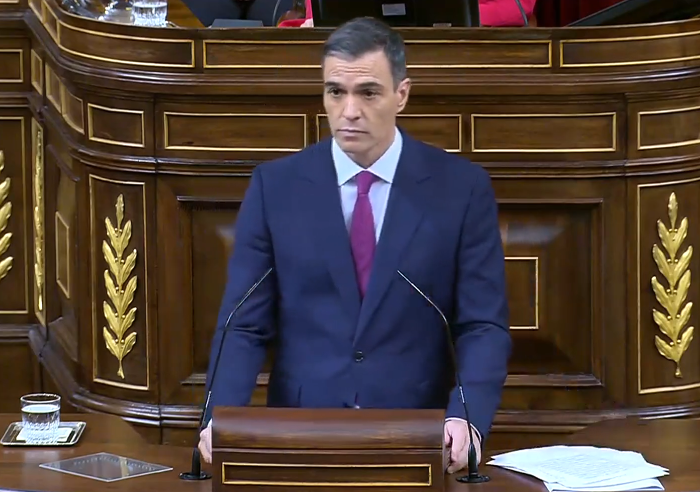 Rápidamente, el discurso de Sánchez se ha visto interrumpido por el tremendo murmullo de las bancadas de la oposición, especialmente desde las que se sentaban los políticos de Vox.