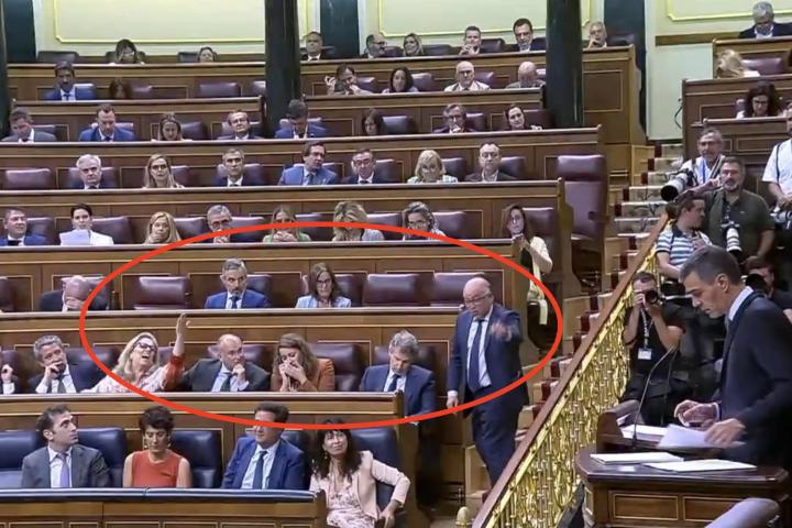 Sánchez ve en directo esta escena en el PP desde la tribuna del Congreso: en 5 segundos lo sentencia