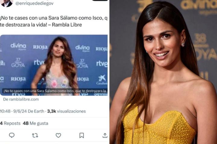 La actriz Sara Sálamo ha publicado uno de los mensajes más sonados del día en las redes sociales al responder a un ataque que había recibido por parte de un usuario.