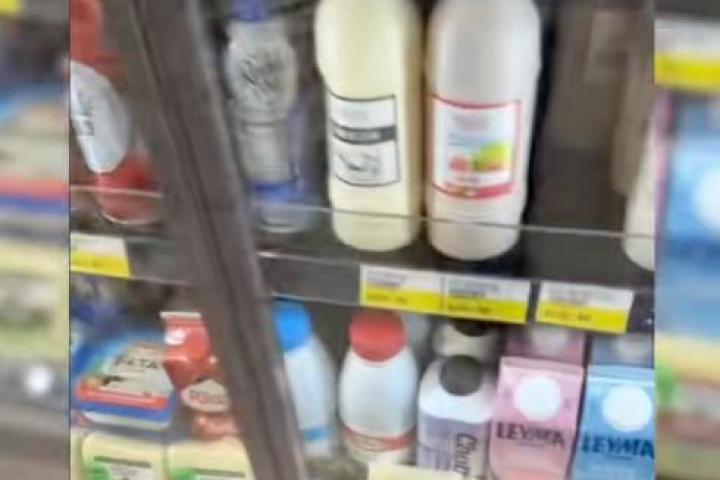 Este hombre de España acude a un supermercado y pregunta por los yogures, el encargado del mercado lo lleva a la zona de lácteos donde hay productos de todo tipo. "Su leche es de colores, no tienen como el brick normal de leche", dice este hombre señalando los clásicos batidos que también hay en España.
