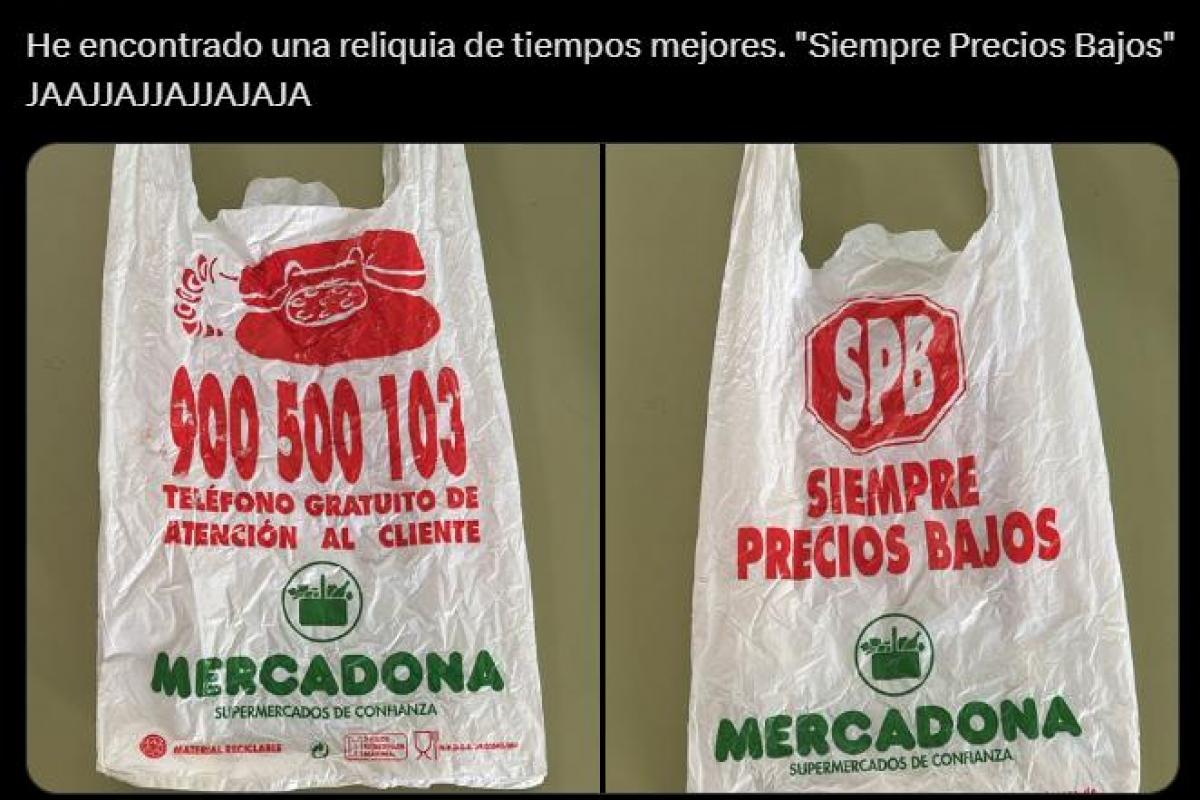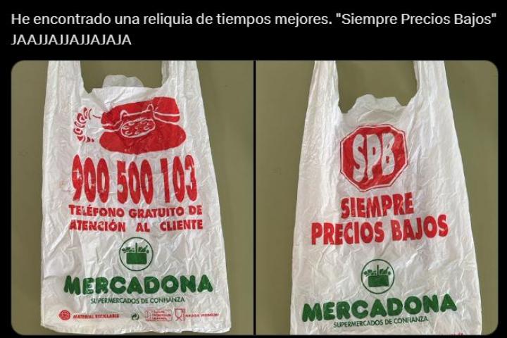 En la imagen se puede observar una bolsa de Mercadona antigua en la que aparece el lema o eslogan "Siempre precios bajos" algo a lo que la usuaria, y otras personas en los comentarios, no ha podido evitar comentar y burlarse e incluso llegar a ironizar sobre si eso a día de hoy podría considerarse como publicidad engañosa.