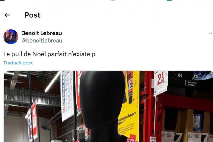 "No existe el suéter navideño perfecto", ha escrito el usuario junto a la foto. En la web de Francia de Brico Depôt se describe al jersey como "cómodo y práctico, 100% acrílico y lavable a máquina" y "perfecto para fiestas cálidas y con estilo". Y cuesta 16.90 euros.