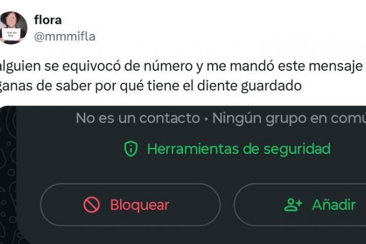 "Alguien se equivocó de número y me mandó este mensaje. Me muero de ganas de saber por qué tiene el diente guardado", ha manifestado la tuitera, totalmente desconcertada.