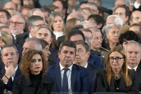 Se escucha perfectamente lo que gritan a Mazón antes del funeral de Estado y su cara lo dice todo
