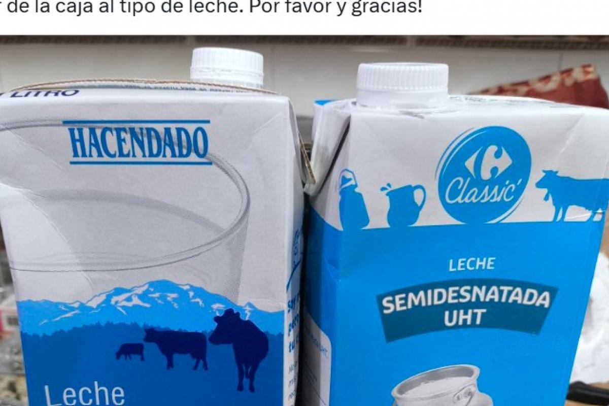 "Hago un llamamiento a los fabricantes de leches para que unifiquen el color de la caja al tipo de leche. Por favor y gracias!", ha asegurado @_IntentoDeMama, que ha subido la foto de dos litros de leche.