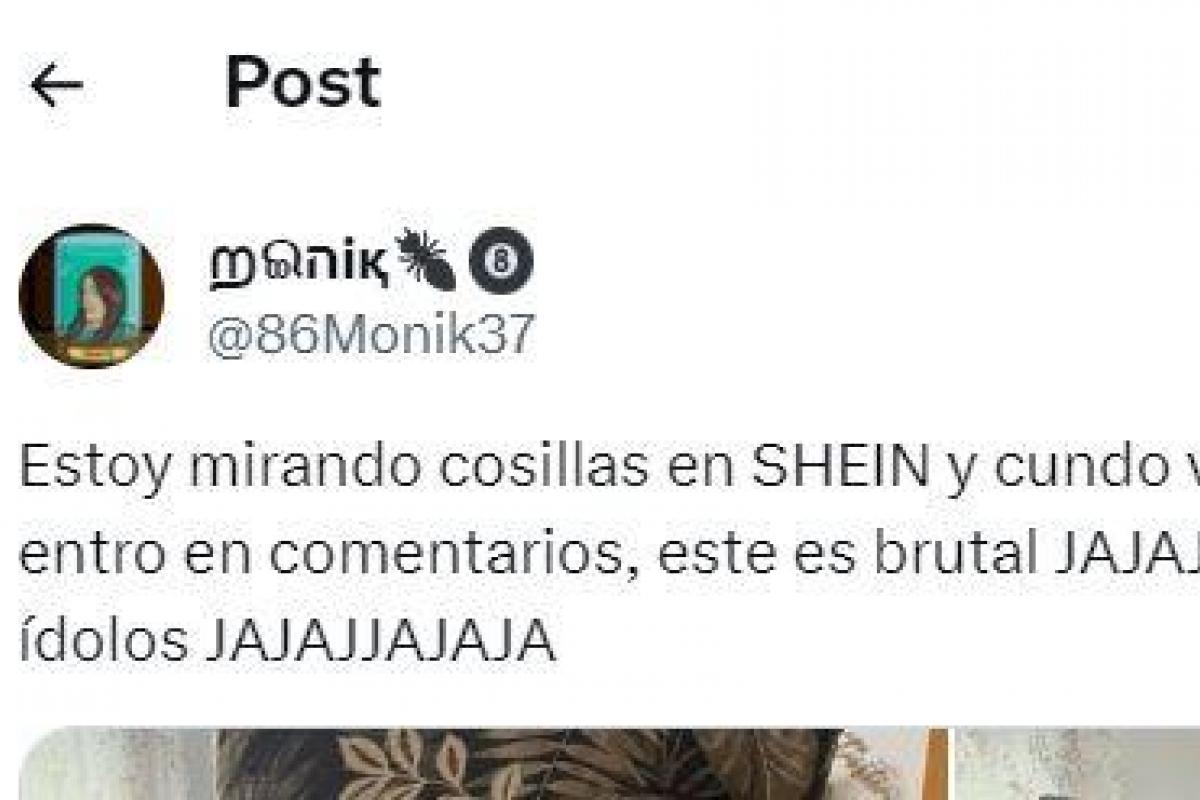 La usuaria de X @86Monik37 ha publicado dos fotografías para enseñar la reseña que ha dejado una clienta al comprar una blusa en SHEIN.