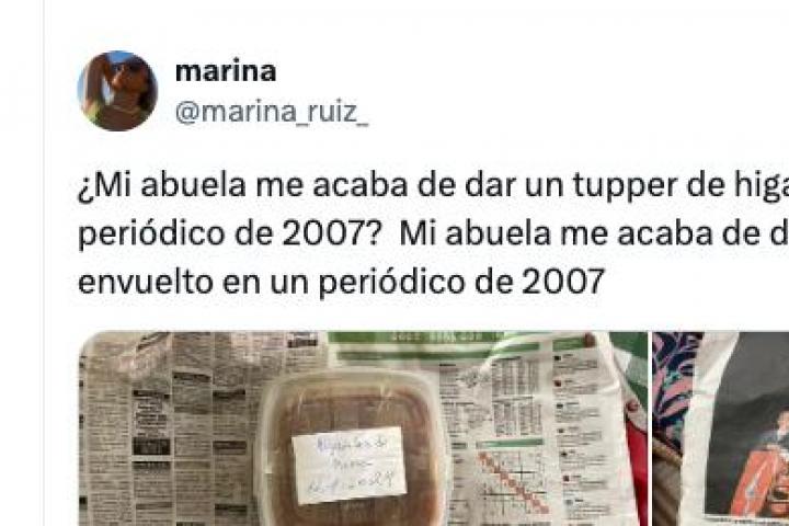 "¿Mi abuela me acaba de dar un tupper de higaditos envuelto en un periódico de 2007? Mi abuela me acaba de dar un tupper de higaditos envuelto en un periódico de 2007", ha escrito Ruíz.