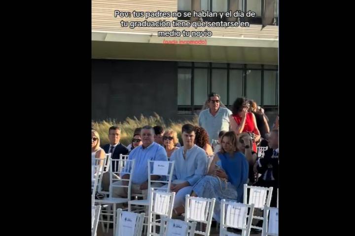 Con un vídeo en el que el contexto lo dice todo, se pueden ver a tres personas mirando hacia el escenario en el que Lucía se está graduando. "Tus padres no se hablan y el día de tu graduación tiene que sentarse en medio tu novio (nada incómodo)", se puede leer en el vídeo.