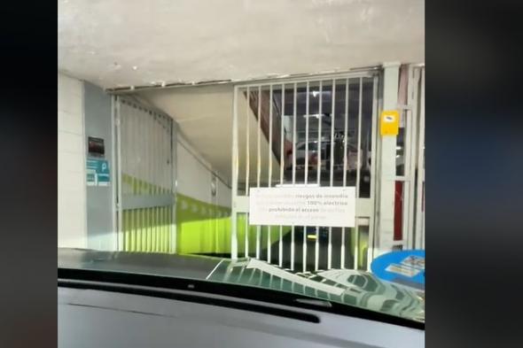 "Estoy alucinando, acabo de llegar a un parking que no me dejan aparcar mi coche eléctrico", dice mientras enseña el letrero que hay en la entrada de ese lugar: "Ante los posibles riesgos de incendio que supone un coche 100% eléctrico, está prohibido el acceso de dichos vehículos en el garaje".