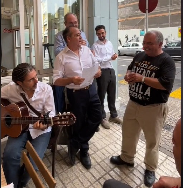 En el vídeo, que ya ha alcanzado las 568.00 visualizaciones y los 24.000 me gustas, se puede ver como los compañeros se reúnen y, ayudados por una guitarra, le cantan al ya ex empleado algunas sevillanas personalizadas.