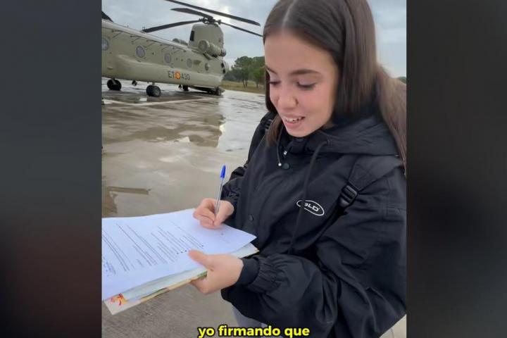 Imagina que te levantas de madrugada, sales de casa y acabas atravesando España con un helicóptero militar en una misión del ejército. Es precisamente lo que le ha pasado a la popular creadora de contenido Noa Cruz (@noacruzzzz) que, tirando de su irónico estilo, ha contado su experiencia.
