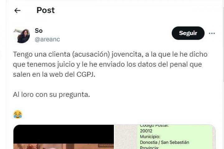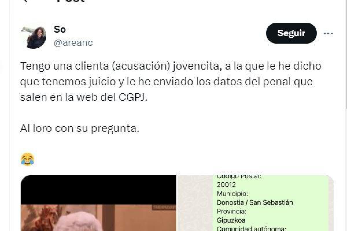 "Al loro", ha dicho sorprendida esta abogada en X.