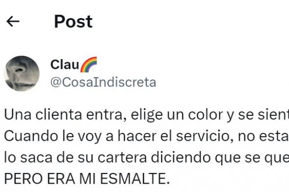 "Una clienta entra, elige un color y se sienta. Cuando le voy a hacer el servicio, no estaba el esmalte en la mesa y ella lo saca de su cartera diciendo que se quería hacer su color", ha detallado, antes de destacar que "era mi esmalte".